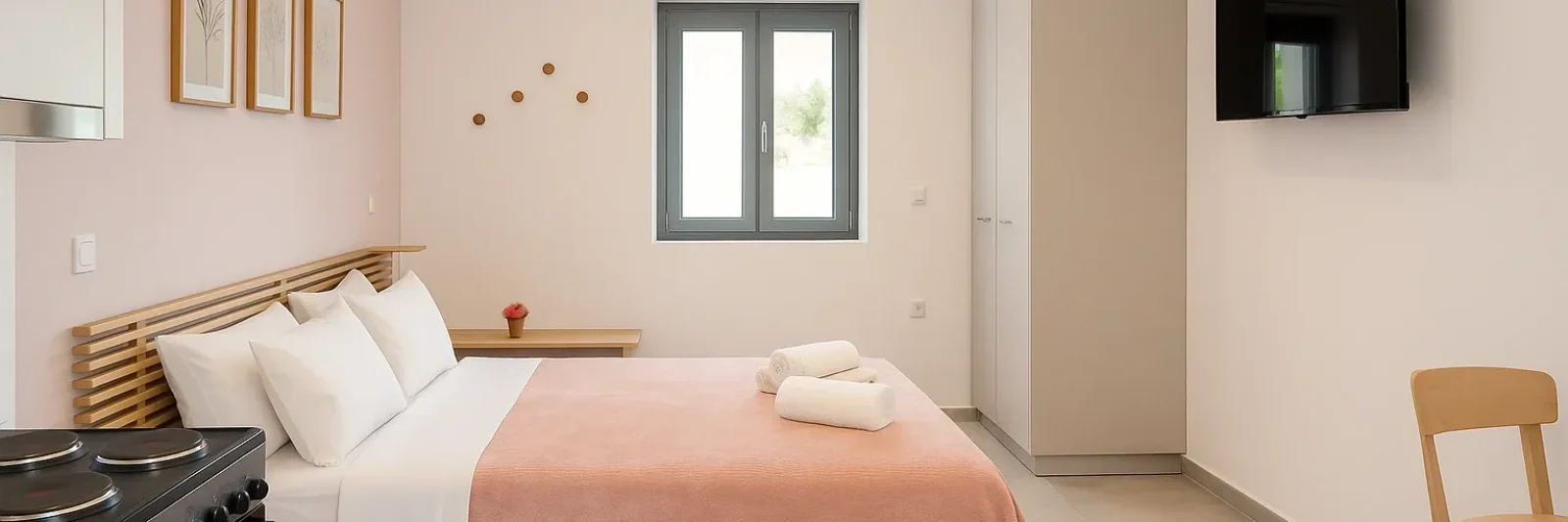 Versteckt im stillen Dorf Chrisoskalitissa, umgeben von Olivenbäumen und Natur, bietet unser modernes Studio eine Unterkunft für Reisende, die Komfort, Schlichtheit und die authentische Schönheit Kretas suchen.